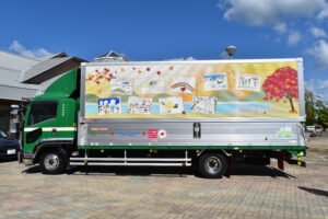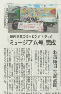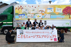 川内村で「こどもミュージアムプロジェクト」のトラックをお披露目 9月22日、川内小中学園で宮田運輸が取り組む 「こどもミュージアムプロジェクト」の トラックがお披露目され、 絵を描いた子供たちも式典に参加しました。 福島民報2025年9月24日記事